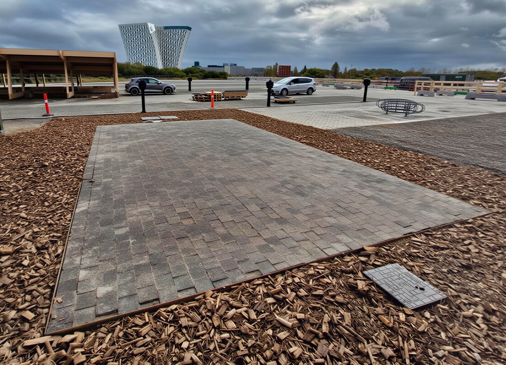 Beyond cladding and insulation, mycelium is already present in hybrid applications where growth and appearance become part of the architectural expression—from wood-like boards such as Comu Labs’ MycoWood to biocomposite panels by MIMBIOSIS, where material origin and texture remain visible. The same logic finds its way into exterior applications, such as VisiPaver by Visibuilt, a paving system grown from agricultural waste and mineral aggregates, where mycelium acts as a biological binder and leaves a warm, legible surface pattern shaped during growth.