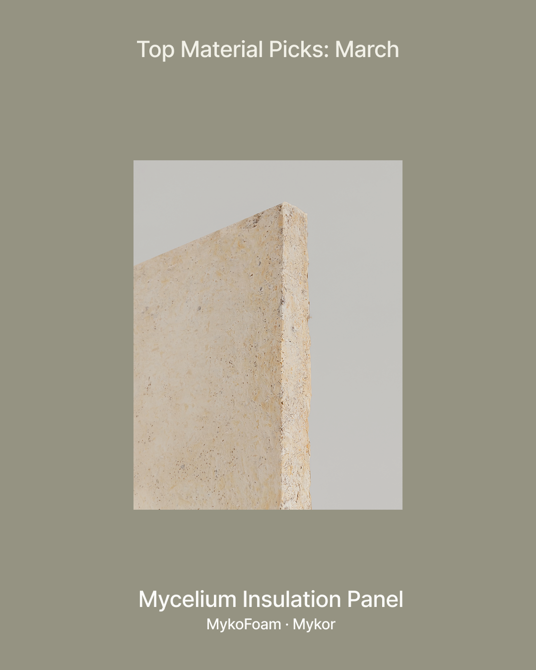 MykoFoam is a mycelium-based insulation panel made from renewable industrial residues, providing thermal and acoustic insulation as a bio-based alternative to conventional materials.