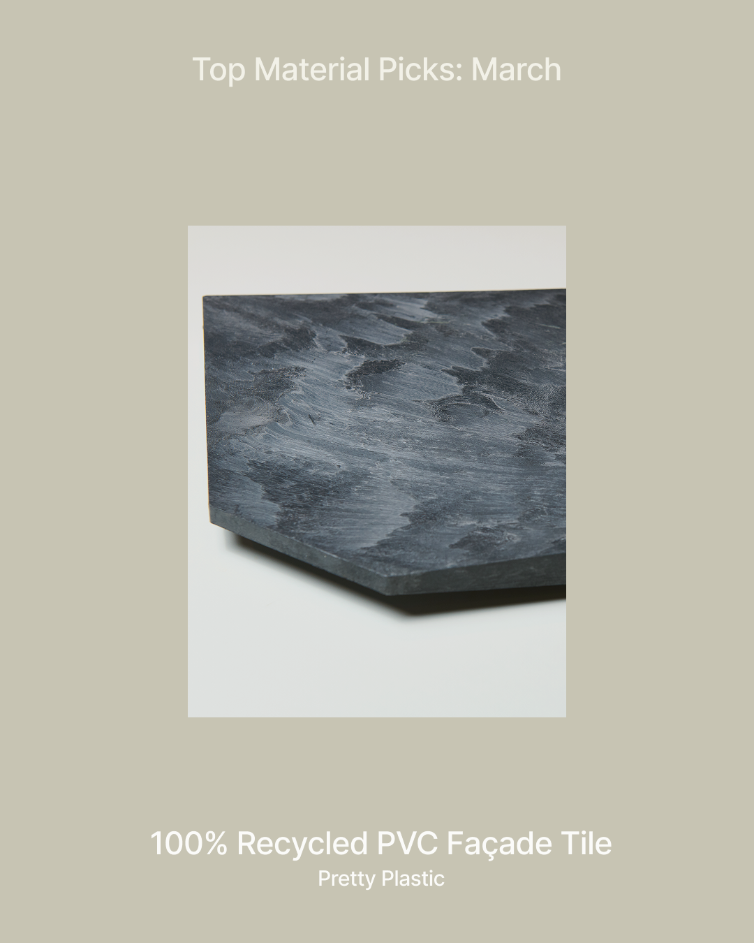 Pretty Plastic tiles are façade and roof cladding elements made from 100% recycled PVC sourced from post-consumer construction waste. Designed for ventilated façade systems, they are fully demountable and recyclable.